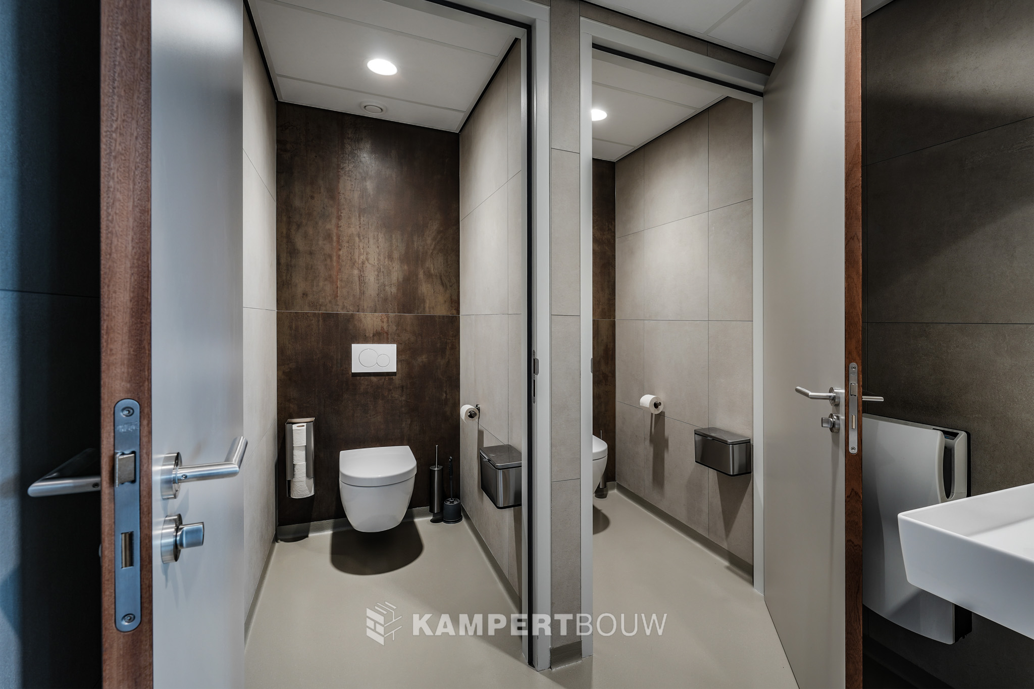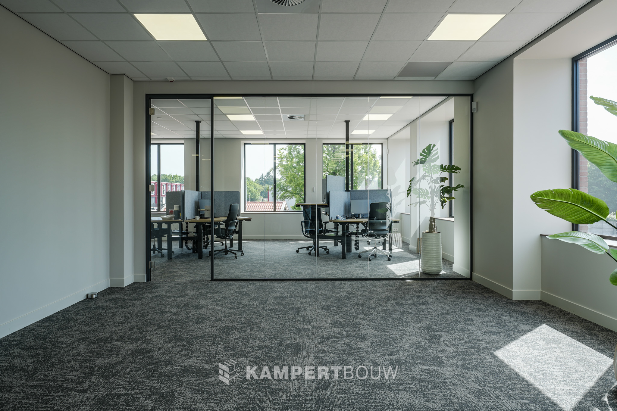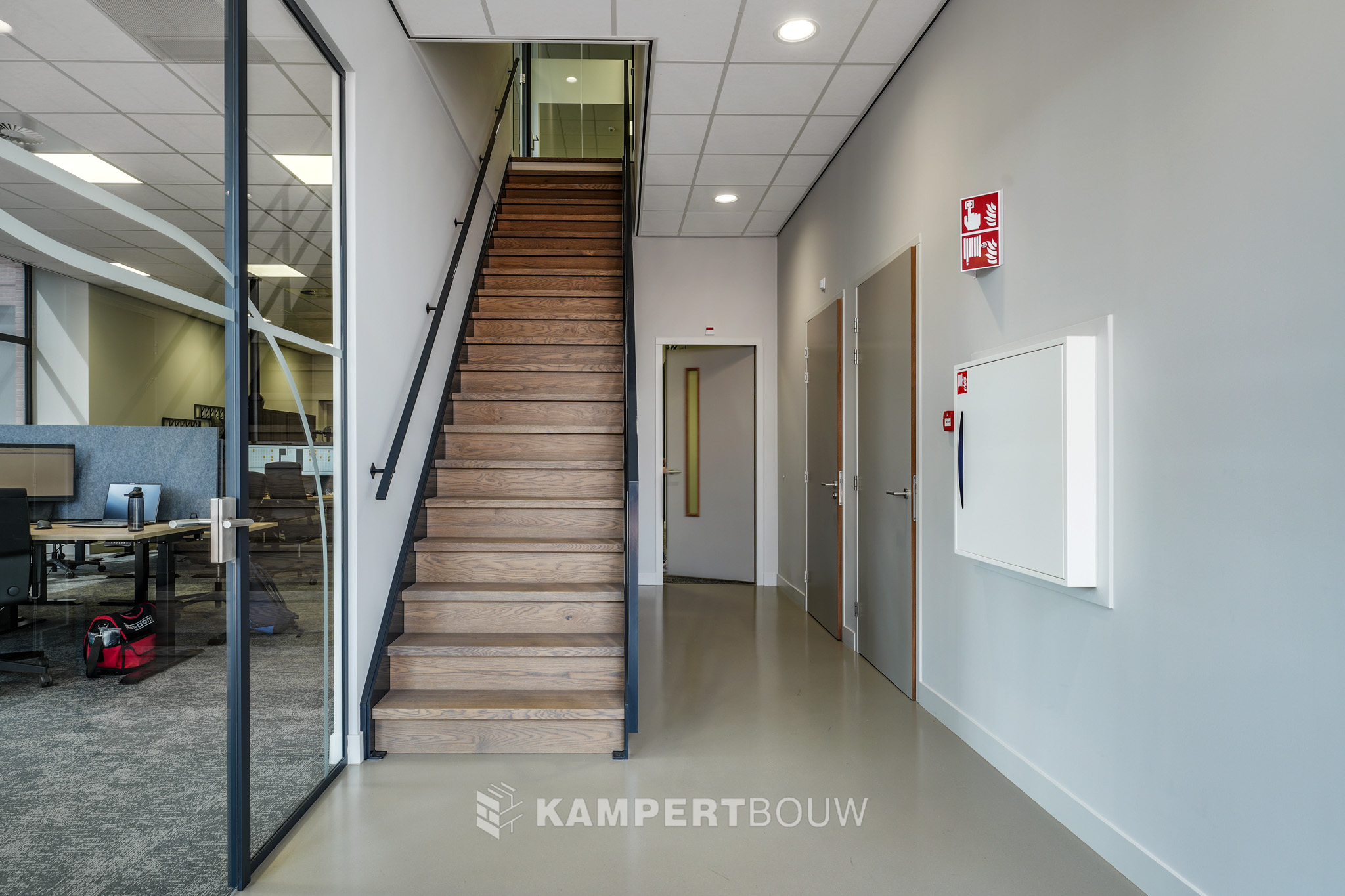 Daarnaast verzorgden we ook het volledige interieur, van entree en kantines tot vergaderruimtes en kantoren. Met glazen akoestische scheidingswanden, een geluidregulerend plafondsysteem met geïntegreerde verlichting en hoogwaardige vloeren hebben we een comfortabele, professionele werkomgeving gecreëerd. Tot slot namen we ook het terrein rondom de hal onder handen, inclusief straatwerk en beplanting, een compleet traject van A tot Z.Een project zoals wij ze graag realiseren: technisch sterk, tot in de puntjes verzorgd en helemaal kloppend. Het resultaat? Een pand dat als gegoten zit. Precies zoals het hoort.