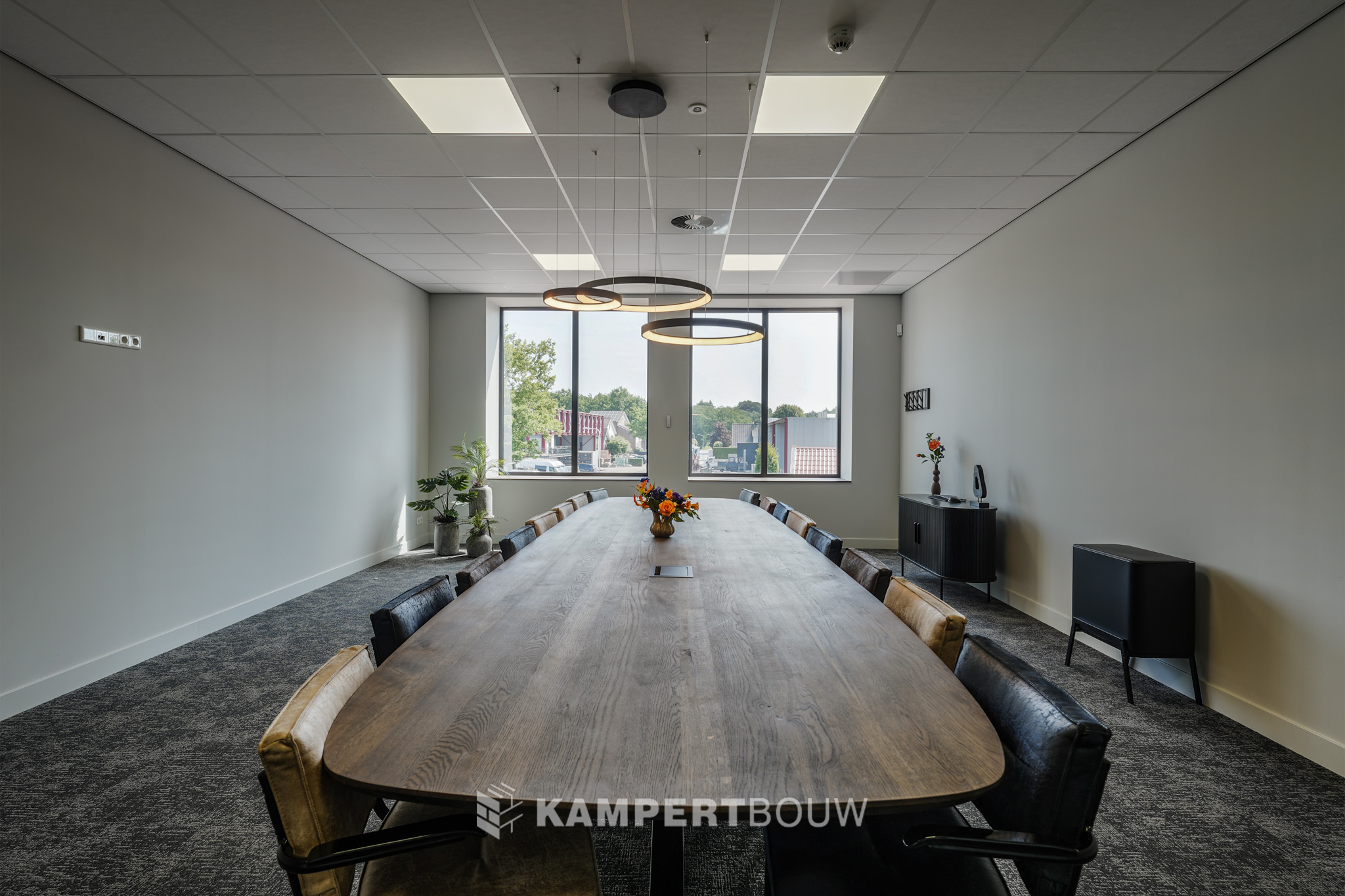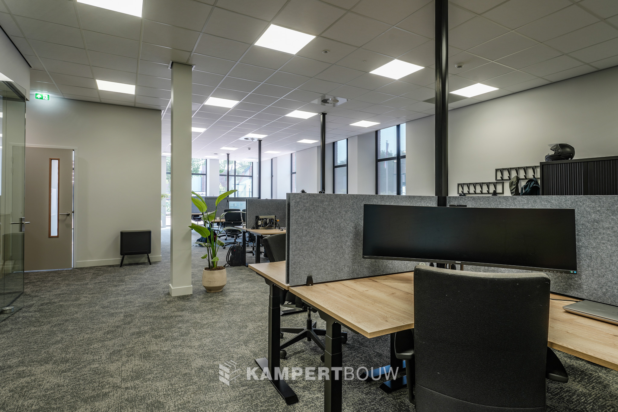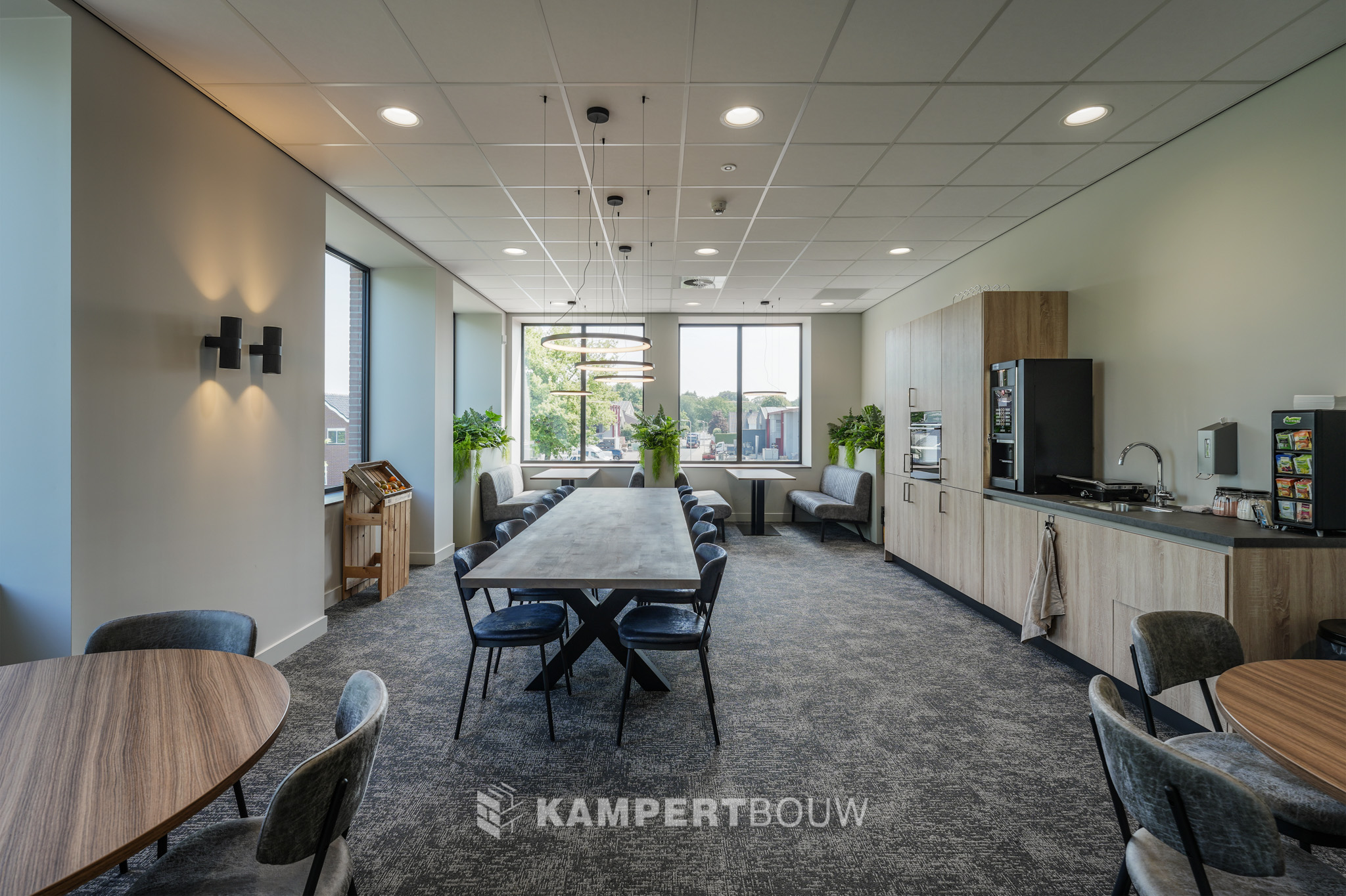 Daarnaast verzorgden we ook het volledige interieur, van entree en kantines tot vergaderruimtes en kantoren. Met glazen akoestische scheidingswanden, een geluidregulerend plafondsysteem met geïntegreerde verlichting en hoogwaardige vloeren hebben we een comfortabele, professionele werkomgeving gecreëerd. Tot slot namen we ook het terrein rondom de hal onder handen, inclusief straatwerk en beplanting, een compleet traject van A tot Z.Een project zoals wij ze graag realiseren: technisch sterk, tot in de puntjes verzorgd en helemaal kloppend. Het resultaat? Een pand dat als gegoten zit. Precies zoals het hoort.