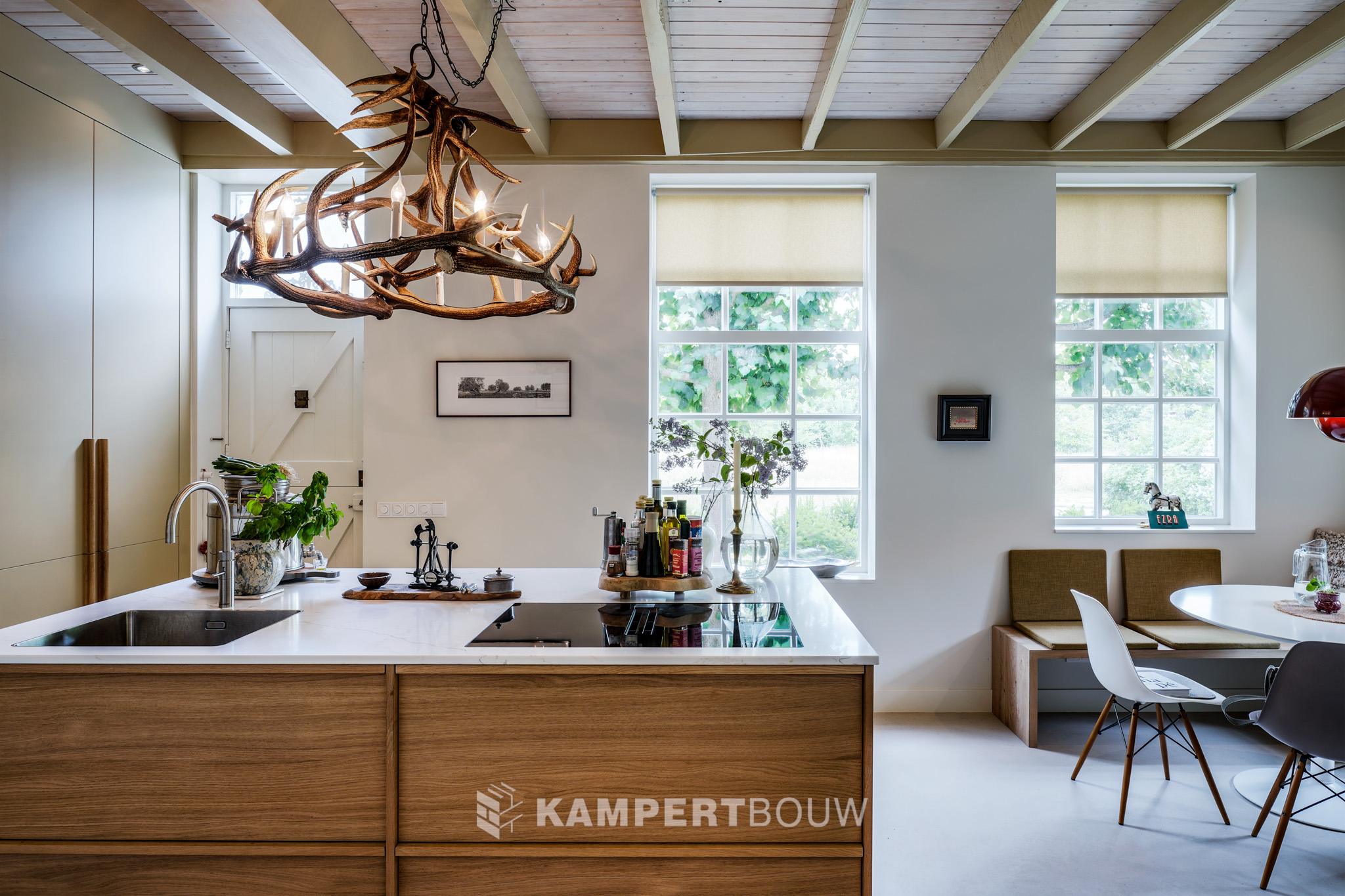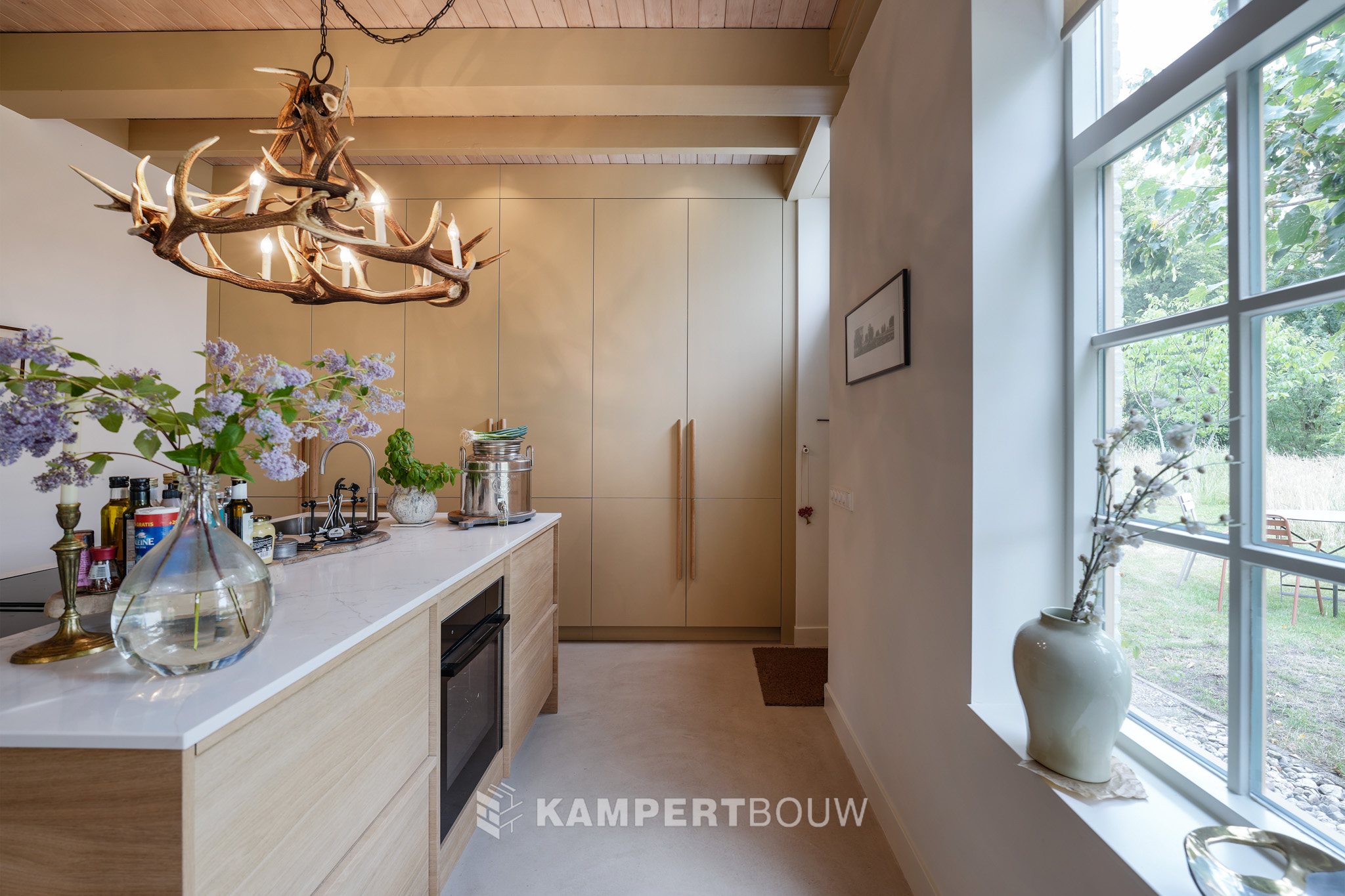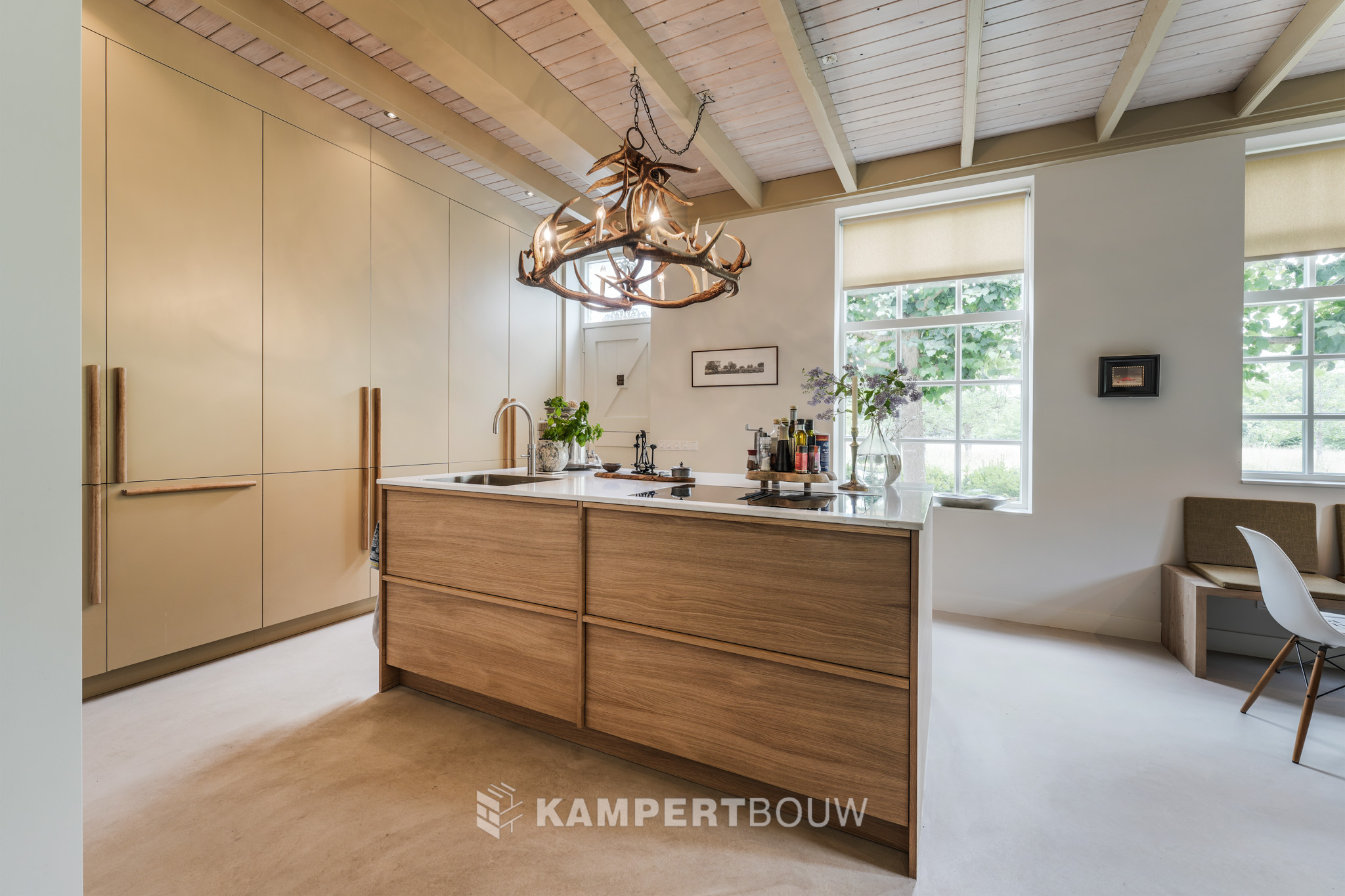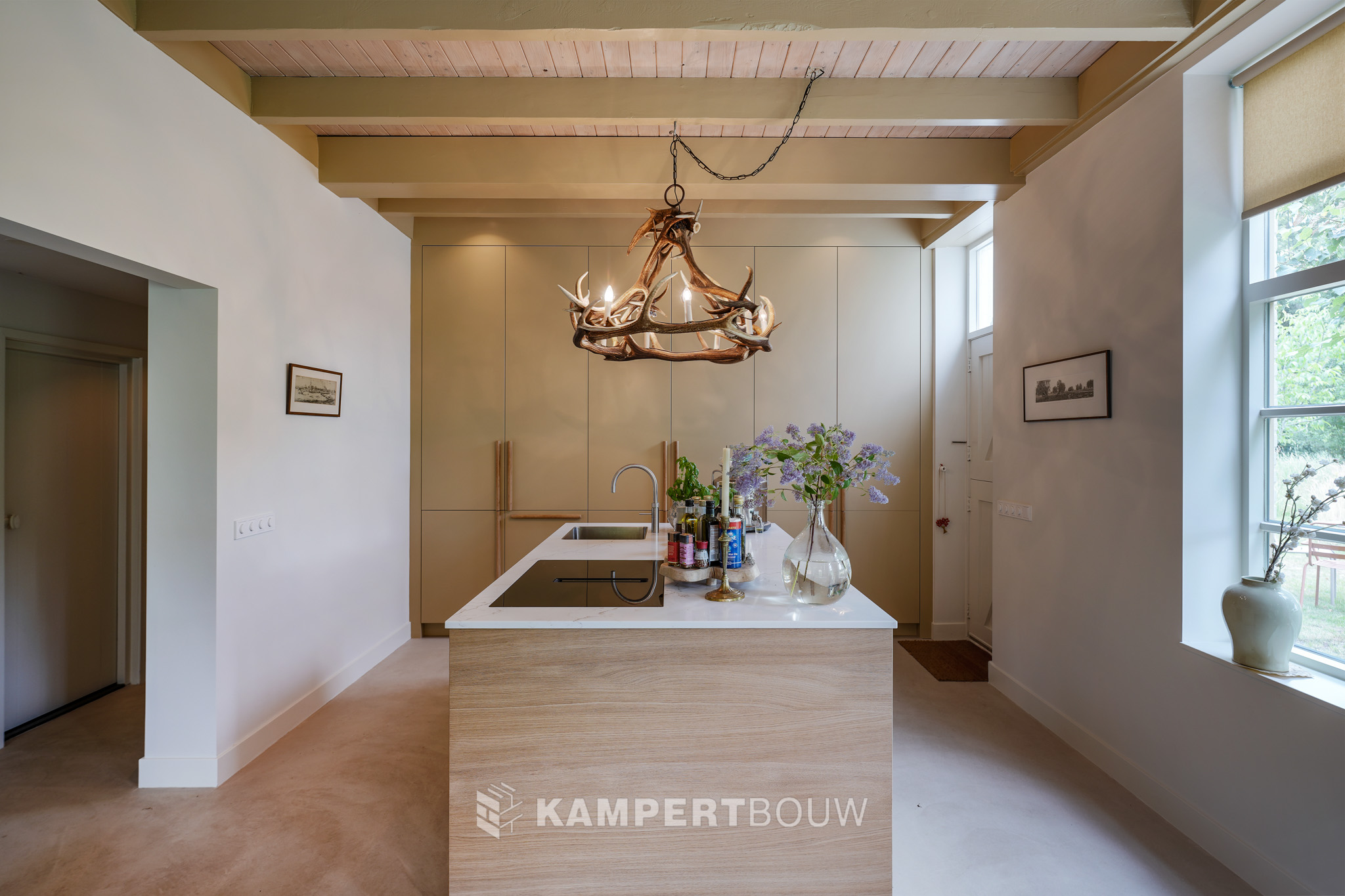 Bij KAMPERTBOUW geloven we in een totaalconcept met korte lijnen en open communicatie. Vanaf het eerste ontwerp tot en met de oplevering is iedere stap zorgvuldig afgestemd op de wensen van de bewoners. Elke ruimte in deze woonboerderij ademt karakter en rust. De doorlopende gietvloer verbindt de kamers en het maatwerkmeubilair sluit naadloos aan op de indeling. Een woning waarin modern comfort en klassieke charme samenkomen, waarin elke dag met groot plezier wordt gewoond.